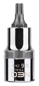 Końcówka Spline na nasadce 1/2"" NEO (nr ref. 08-731) o rozmiarze M6, długości 55 mm. Nasadka wykonana z wytrzymałej stali chromowo-wanadowej. Końcówka sześciokątna z wysokogatunkowej stali stopowej S2. 25-letnia gwarancja producenta potwierdza wysoką jakość narzędzia. Marka NEO spełnia oczekiwania profesjonalistów.