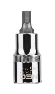Końcówka sześciokątna na nasadce 1/2"" NEO (nr ref. 08-771) o rozmiarze H6, długości 55 mm, zgodna z normą DIN 7422. Nasadka wykonana z wytrzymałej stali chromowo-wanadowej. Końcówka sześciokątna z wysokogatunkowej stali stopowej S2. Jakość narzędzia potwierdzona certyfikatem TUV i 25-letnią gwarancją producenta. Marka NEO spełnia oczekiwania profesjonalistów.