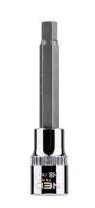 Końcówka sześciokątna na nasadce 1/2"" NEO (nr ref. 08-783) o rozmiarze H8, długości 100 mm, zgodna z normą DIN 7422. Nasadka wykonana z wytrzymałej stali chromowo-wanadowej. Końcówka sześciokątna z wysokogatunkowej stali stopowej S2. Jakość narzędzia potwierdzona certyfikatem TUV i 25-letnią gwarancją producenta. Marka NEO spełnia oczekiwania profesjonalistów.