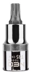 Końcówka Torx na nasadce 1/2"" NEO (nr ref. 08-755) o rozmiarze T45, długości 55 mm. Nasadka wykonana z wytrzymałej stali chromowo-wanadowej. Końcówka sześciokątna z wysokogatunkowej stali stopowej S2. Jakość narzędzia potwierdzona certyfikatem TUV i 25-letnią gwarancją producenta. Marka NEO spełnia oczekiwania profesjonalistów.