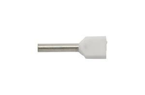 Podwójna końcówka kablowa tulejkowa z izolacją, którą instalatorzy wykorzystują do zakańczania przewodów wielodrutowych. Służy do prasowania dwóch kabli o żyałach miedzianych o przekroju 0,75 mm2 pod jeden zacisk. Długość rękawa w tym przypadku wynosi 10 mm, kołnierz izolacyjny jest w kolorze białym. Końcówka wykonana jest w miedzi pokrytej cyną.