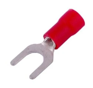 Końcówki widełkowe izolowane do kabli miedzianych wielodrutowych.