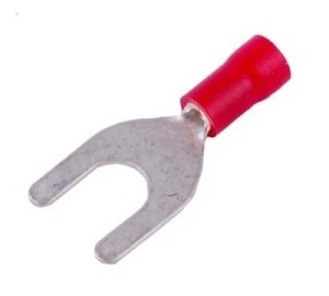 Końcówki widełkowe izolowane do kabli miedzianych wielodrutowych.