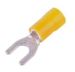Końcówki widełkowe izolowane do kabli miedzianych wielodrutowych.