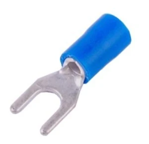 Końcówki widełkowe izolowane do kabli miedzianych wielodrutowych.