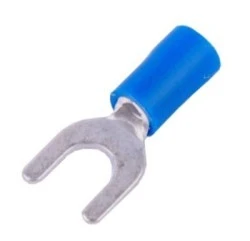 Końcówki widełkowe izolowane do kabli miedzianych wielodrutowych.