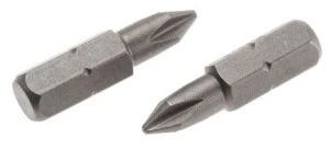 25 mm sześć bitów. Koronki do śrub z łbem walcowym rowkiem i śrubami z łbem gniazdowym Supadriv/Pozidrriv™, sześciokątnymi i TORX®. Wszystkie bity mają przekrój wałka sześciokątnego (1/4 in. w poprzek) z wycięciami, które umożliwiają ich zlokalizowanie i zablokowanie w odpowiednim narzędziu. Charakterystyka i zalety Koronki wykonane są z chromowanej stali wanadowej z szarymi, odpornymi na zarysowania wykończeniem 5 elementów - końcówki gwiazdkowe T-15 z torx do torby
