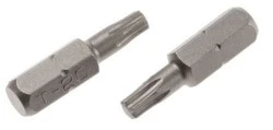 25 mm sześć bitów. Koronki do śrub z łbem walcowym rowkiem i śrubami z łbem gniazdowym Supadriv/Pozidrriv™, sześciokątnymi i TORX®. Wszystkie bity mają przekrój wałka sześciokątnego (1/4 in. w poprzek) z wycięciami, które umożliwiają ich zlokalizowanie i zablokowanie w odpowiednim narzędziu. Charakterystyka i zalety Koronki wykonane są z chromowanej stali wanadowej z szarymi, odpornymi na zarysowania wykończeniem 5 elementów - końcówki gwiazdkowe T-15 z torx do torby