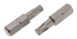 25 mm sześć bitów. Koronki do śrub z łbem walcowym rowkiem i śrubami z łbem gniazdowym Supadriv/Pozidrriv™, sześciokątnymi i TORX®. Wszystkie bity mają przekrój wałka sześciokątnego (1/4 in. w poprzek) z wycięciami, które umożliwiają ich zlokalizowanie i zablokowanie w odpowiednim narzędziu. Charakterystyka i zalety Koronki wykonane są z chromowanej stali wanadowej z szarymi, odpornymi na zarysowania wykończeniem 5 elementów - końcówki gwiazdkowe T-15 z torx do torby