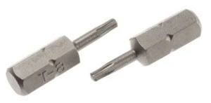 25 mm sześć bitów. Koronki do śrub z łbem walcowym rowkiem i śrubami z łbem gniazdowym Supadriv/Pozidrriv™, sześciokątnymi i TORX®. Wszystkie bity mają przekrój wałka sześciokątnego (1/4 in. w poprzek) z wycięciami, które umożliwiają ich zlokalizowanie i zablokowanie w odpowiednim narzędziu. Charakterystyka i zalety Koronki wykonane są z chromowanej stali wanadowej z szarymi, odpornymi na zarysowania wykończeniem 5 elementów - końcówki gwiazdkowe T-15 z torx do torby
