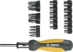 Końcówki wkrętakowe i nasadki z uchwytem, zestaw 29 szt., 1/4 cala, uchwyt wkętakowy magnetyczny, 6 szt. nasadek metrycznych, rozmiary: 5, 6, 7, 8, 9, 10 mm, 6 szt. nasadek calowych: 1/4 cala, 5, 16 cala, 11, 32 cala, 3/8 cala, 7, 16 cala, 1/2 cala, 15 szt. końcówek wkrętakowych, rozmiary; płaskie: 4, 5.5, 7 mm, krzyżowe PH1, 5 x PH2, PH3, Torx: T15, T20, T25, sześciokątne: H3, H4, adapter 10 mm x 1/4 cala, stal CrV