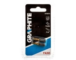 Końcówki wkrętakowe GRAPHITE (nr ref. 57H973) typu TX20, przeznaczone do wkręcania/wykręcania wkrętów i śrub z łbem typu Torx o rozmiarze 20 mm. Pokrycie powierzchni końcówek azotkiem tytanu (złoty kolor) znacząco przedłuża żywotność narzędzia poprzez utwardzenie punktu styku z łbem śruby.