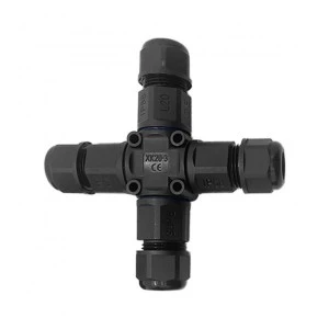 onektor kablowy, rozdzielacz czterokrotny typu-X z szybkozłączką 400V/16A to wysokiej jakości element łączący, przeznaczony do zastosowań wymagających niezawodności i trwałości. Wysoki stopień ochrony IP68 potwierdza możliwość montażu na zewnątrz, a nawet w gruncie, gdzie wymagana jest wysoka szczelność i ochrona przed wodą oraz pyłem.