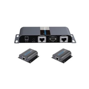 - 2-portowy Extender - splitter HDMI składający się nadajnika oraz 2 odbiorników