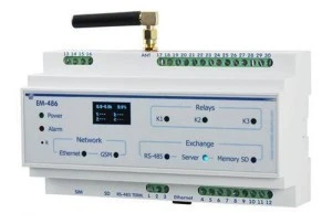 EM-486 umożliwia zdalny dostęp do podłączonych 4 czujników uniwersalnych i do rejestrów Modbus urządzeń spiętych za pomocą interfejsu RS-485. Komunikację z urządzeniem nawiązujemy poprzez GSM i wiadomości tekstowe SMS.