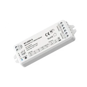 Konwerter sygnału sterowania to sterownik w formie konwertera DMX512, który wykorzystuje bezprzewodową sieć Wifi, by móc sterować wyjściem urządzenia, które może być podłączone do dekodera DMX512. Produkt posiada jedno wyjście DMX512, dla którego określony zostaje tryb pracy dla oświetlenia LED. Może on bowiem pracować w trybie od 1 do 5 kanałów, a to pozwala na zastosowanie dekodera DMX512 zarówno dla taśm jednokolorowych jak również tych wielokolorowych ze zmienną temperaturą barwową RGB+CCT. Posiada również możliwość komunikacji za pomocą drogi radiowej, bazującej na częstotliwości 2,4GHz. Sterownik zaopatrzony również w dwa dedykowane wejścia na przycisk dzwonkowy.