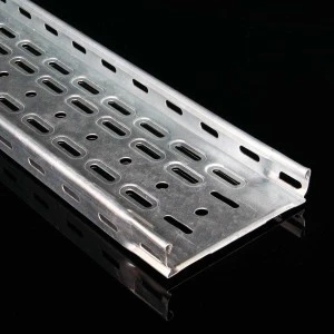 Korytko kablowe ze zintegrowanym złączem KZI 35x100 z blachy 0,75 mm do obróbki powierzchniowej Sendzimira, perforowane, z wytłoczeniami zwiększającymi sztywność i solidność.