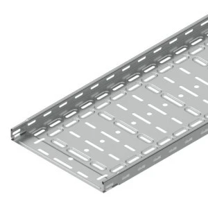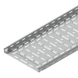 Korytko kablowe ze zintegrowanym złączem KZI 35x300 z blachy 0,75 mm do obróbki powierzchniowej Sendzimira, perforowane, z wytłoczeniami zwiększającymi sztywność i solidność.