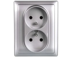 Sedna Gniazdo podwójne z/u 16A aluminium SDN2800960