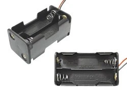 Koszyk na cztery baterie AA LR6. Przewody są wyprowadzone i przygotowane do lutowania.