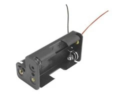 Koszyk na trzy baterie AA LR6. Przewody są wyprowadzone i przygotowane do lutowania.