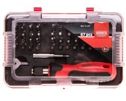 Wykonanie grotów z wysokogatunkowej stali chromowo-wanadowej gwarantuje wysoką jakość produktu Ergonomiczna rękojeść zaopatrzona w szybkomocujący uchwyt magnetyczny umożliwia bezproblemową wymianę grotów