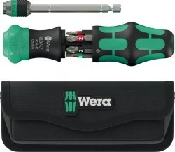 Wykonanie:grzechotka z drobnym uzębieniem zintegrowana z rękojeścią, intuicyjne przełączanie, mechanizm zapadkowy można zablokować w pozycji 0 dla zapewnienia precyzyjnej pracy; gniazdo sześciokątne 1/4", magnetyczne; adapter, trzpień teleskopowy, technologia Rapidaptor z tuleją szybkomocującą z funkcjami rapid-in, rapid-out, rapid-spin, chuck-all i funkcją obsługi jedną ręką do błyskawicznej wymiany bitów. 6 bitów BiTorsion charakteryzujących się długą żywotnością, ciągliwo-twardych, do uniwersalnego zastosowania. System wyszukiwania Take it easy: z oznaczeniem kolorystycznym profilu i rozmiaru ułatwiającym znalezienie odpowiedniego bitu.