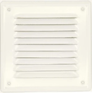 Kratka wentylacyjna metalowa z siatką przeciwko owadom, z dwoma łapami rozporowymi w zestawie. Wygodny sposób montażu w otworach wentylacyjnych bez konieczności kołkowania lub klejenia. Zastosowanie typowo zewnętrzne, ściany, kominy. Skośne żeberka uniemożliwiają wpadanie deszczu czy śniegu