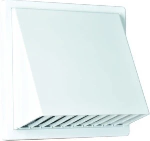 Kratka wentylacyjna z okapem przeznaczona na zewnętrzną elewację budynków. Posiada zawór chroniący przed ciągiem zwrotnym, a także siatkę zabezpieczającą przed ptakami czy zanieszczyczeniami. Kształt powoduje zatrzymanie wody przed wpadaniem do kanału.