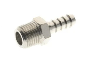 Króciec gwintowany choinka do węża fi 14 mm R 1/2 GZ, mosiądz niklowany, gwint stożkowy