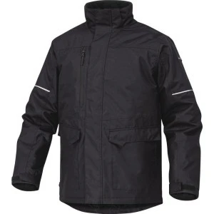 Kurtka. Szwy uszczelnione. Zapinanie na zamek błyskawiczny pod listwą na rzep. Kaptur odpinany, watowany. 5 kieszeni.