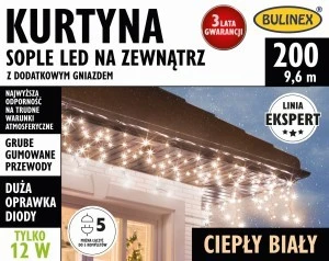 Kurtyna świetlna zewnętrzna flesz 200l kurtyna sople z dod.gn. 9,6m dekoracji+1,5 m przew. ciepły biały/biały flesh 25-698