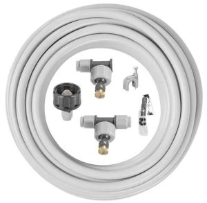 Zestaw zawiera: 7,5 m węża, przyłącze z gwintem wew. G 3/4” - 1, dysze mgłowe – 4, dysze stop – 1, klips – 10, hak montażowy – 10
