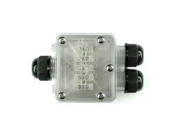 Konstrukcja puszki - Puszka jest wyposażona w uchwyty umożliwijające montaż naścienny. Przezroczysta obudowa umożliwia naoczną kontrolę bez potrzeby rozkręcania. Dławice z uszczelkami są dostosowane do kabli o średnicy od 6 do 12 mm, oraz 5 torową kostką elektryczną, co sprawia, że jest odpowiednia dla różnych typów przewodów, jednocześnie zapobiegając przedostawaniu się wody.