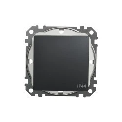 Łącznik 1-biegunowy IP44, czarny antracyt, to osprzęt serii Sedna Design & Elements marki Schneider Electric. Łącznik 1-biegunowy IP44 ma malowane wykończenie powierzchni w kolorze czarnego antracytu i posiada następujące wymiary: szerokość 73 mm, wysokość 73 mm, głębok ość 38 mm, głębokość wystawania 24 mm. Długość izolacji zdejmowanej z kabla to 13 mm. Łącznik charakteryzuje się stopniem ochrony IP44 i zakresem mocy wynoszącym 2300 W. Do produkcji łącznika wykorzystano tworzywo termoplastyczne o zwiększonej odporności na promieniowan ie UV. Produkt jest montowany podtynkowo i posiada zaciski śrubowe. Urządzenie może być wykorzystywane jako tradycyjny włącznik światła lub służyć do załączania innych urządzeń o maksymalnym poborze prądu do 10 AX.Uwaga: produkty Sedna Design & Elements nie są kompatybi lne z serią Sedna!