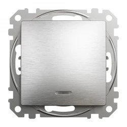 Łącznik 1-biegunowy z podświetleniem, szczotkowane aluminium, efekt metalu, to osprzęt serii Sedna Design & Elements marki Schneider Electric. Łącznik 1-biegunowy z podświetleniem ma satynowe wykończenie powierzchni w kolorze szczotkowanego aluminium i posiada następujące wymiary: szerokość 73 mm, wysokość 73 mm, głębokość 37 mm, głębokość wystawania 24 mm. Długość izolacji zdejmowanej z kabla to 13 mm. Łącznik charakteryzuje się stopniem ochrony IP20 i zakresem mocy wynoszącym 2300 W. Do produkcji łącznika wykorzystano tworzywo termoplastyczne o zwiększonej odporności na promieniowanie UV, które doskonale imituje naturalne materiały. Produkt jest montowany podtynkowo i posiada zaciski bezśrubowe. Urządzenie może byc wykorzystywane jako tradycyjny włącznik światła lub służyć do załączania innych urządzeń o maksymalnym poborze prądu do 10 AX.Uwaga: produkty Sedna Design & Elements nie są kompatybilne z serią Sedna!