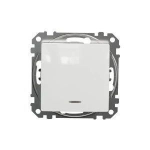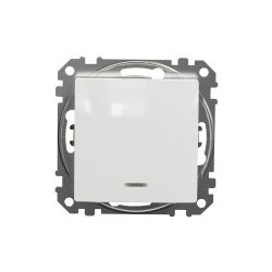 Łącznik 1-biegunowy z sygnalizacją załączenia, biały, to osprzęt serii Sedna Design & Elements marki Schneider Electric. Łącznik 1-biegunowy z sygnalizacją załączenia ma lśniące wykończenie powierzchni w kolorze białym i posiada następujące wymiary: szerokość 73 mm, wys okość 73 mm, głębokość 37 mm, głębokość wystawania 24 mm. Długość izolacji zdejmowanej z kabla to 13 mm. Łącznik charakteryzuje się stopniem ochrony IP20 i zakresem mocy wynoszącym 2300 W. Do produkcji łącznika wykorzystano tworzywo termoplastyczne o zwiększonej odporno ści na promieniowanie UV. Produkt jest montowany podtynkowo i posiada zaciski bezśrubowe. Urządzenie może byc wykorzystywane jako tradycyjny włącznik światła lub służyć do załączania innych urządzeń o maksymalnym poborze prądu do 10 AX.Uwaga: produkty Sedna Design & Ele ments nie są kompatybilne z serią Sedna!