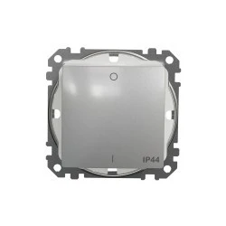 Łącznik 2-biegunowy IP44, srebrne aluminium, to osprzęt serii Sedna Design & Elements marki Schneider Electric. Łącznik 2-biegunowy IP44 ma malowane wykończenie powierzchni w kolorze srebrnego aluminium i posiada następujące wymiary: szerokość 73 mm, wysokość 73 mm, głę bokość 38 mm, głębokość wystawania 24 mm. Długość izolacji zdejmowanej z kabla to 13 mm. Łącznik charakteryzuje się stopniem ochrony IP44 i zakresem mocy wynoszącym 2300 W. Do produkcji łącznika wykorzystano tworzywo termoplastyczne o zwiększonej odporności na promienio wanie UV. Produkt jest montowany podtynkowo i posiada zaciski śrubowe. Uwaga: produkty Sedna Design & Elements nie są kompatybilne z serią Sedna!
