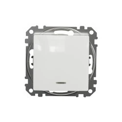 Łącznik 2-biegunowy z sygnalizacją załączenia 16AX, biały, to osprzęt serii Sedna Design & Elements marki Schneider Electric. Łącznik 2-biegunowy ma lśniące wykończenie powierzchni w kolorze białym i posiada następujące wymiary: szerokość 73 mm, wysokość 73 mm, głębokoś ć 37 mm, głębokość wystawania 24 mm. Długość izolacji zdejmowanej z kabla to 13 mm. Łącznik charakteryzuje się stopniem ochrony IP20 i zakresem mocy wynoszącym 3680 W. Do produkcji łącznika wykorzystano tworzywo termoplastyczne o zwiększonej odporności na promieniowanie UV. Produkt jest montowany podtynkowo i posiada zaciski bezśrubowe. Uwaga: produkty Sedna Design & Elements nie są kompatybilne z serią Sedna!