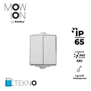 Łącznik, Długość [mm]: 64, Szerokość [mm]: 55, Wysokość [mm]: 74, Kolor: szary, Liczba dźwigni: 2, Materiał: ABS,PC, Miejsce montażu: do nadbudowania na ścianie, Napięcie znamionowe [V]: 250 AC, Ochrona styków: 1, Podświetlanie: nie dotyczy, Prąd znamionowy [AX]: 10, Rodzaj zacisku: zacisk śrubowy, Stopień IP: 65, Zakres przekrojów stosowanych przewodów [mm2]: <10.