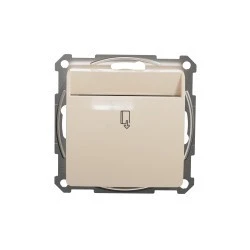 Łącznik hotelowy elektroniczny, beżowy, to osprzęt serii Sedna Design & Elements marki Schneider Electric. Łącznik hotelowy ma lśniące wykończenie powierzchni w kolorze beżowym i posiada następujące wymiary: szerokość 71 mm, wysokość 71 mm, głębokość 42 mm. Długość izol acji zdejmowanej z kabla to 8 mm. Łącznik charakteryzuje się stopniem ochrony IP20 i zakresem mocy wynoszącym 1470 W. Do produkcji łącznika wykorzystano tworzywo termoplastyczne o zwiększonej odporności na promieniowanie UV. Produkt jest montowany podtynkowo i posiada z acisk śrubowy. Uwaga: produkty Sedna Design & Elements nie są kompatybilne z serią Sedna!