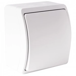 Jednobiegunowy łącznik przeznaczony do montażu natynkowego. Produkt służy do załączania i odłączania obwodu, z którym połączona jest np. lampa. Produkt może jednak sterować również innymi urządzeniami w naszym otoczeniu. Łącznik wykonany jest z wysokogatunkowego tworzywa sztucznego i występuje w 3 kolorach: białym, czarnym lub szaro-grafitowym. Posiada klasę szczelności IP44, więc może być stosowany zarówno wewnątrz jak i na zewnątrz.