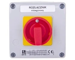 Łącznik krzywkowy 0‑1 10A 4P w obudowie żółto‑czerwony SK10‑2.8210OB12ZC