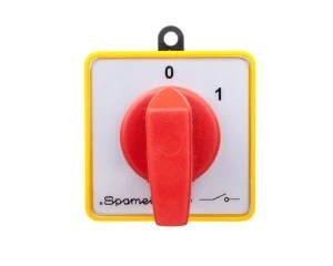 Łącznik krzywkowy 10A rozłącznik 0-1 4P w obudowie OB11 z czołem zamykanym żółto/czerwonym SK10-2.8210\OB11ZC