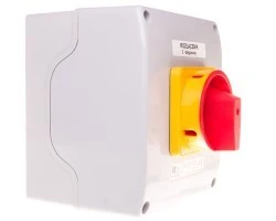 Łącznik krzywkowy 0‑1 3P 100A w obudowie OB18 z czołem zamykanym żółto/czerwonym SK100‑2.8211OB18ZC