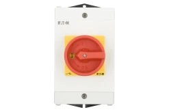 Dla serii P można także dobrać dodatkowe akcesoria zamówione w komplecie jak styki pomocnicze i biegun neutralny N (4‑ty). /HI11 w typie oznacza fabrycznie zamontowane styki 1NO+1NC natomiast /N w typie oznacza dodatkowy biegun neutralny, np. P1‑25/EA/SVB‑SW/N/HI11 – rozłącznik 25A, 4‑bieg., z dodatkowymi stykami NO+NC oraz czarną rączką w systemie LOTO. Forma montażowa natablicowa, czyli do montażu bezpośrednio na boku lub drzwiach szafy. P1‑25/I2/SVB/HI11 – rozłącznik 25A, 3‑bieg., z dodatkowymi stykami NO+NC oraz czerwono‑żółtą rączką w systemie LOTO. W obudowie IP65 z tworzywa. Montaż, np. na ścianie.