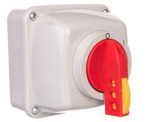 Łącznik krzywkowy 0-1 3P 32A IP65 w obudowie żółte-czerwone duże 3 x kłódka ML032.3-10RG3/OB