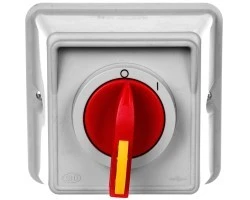 Łącznik krzywkowy 0-1 3P 32A IP65 w obudowie żółte-czerwone duże 3 x kłódka ML032.3-10RG3/OB