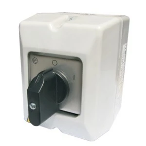 Łącznik typu ZAŁĄCZ-WYŁĄCZ, w obudowie z tworzywa. Prąd łączeniowy: 63A IP65 Wszystkie zaciski i połączenia wewnętrzne chronione (IP20) Wysoka wytrzymałość mechaniczna i elektryczna