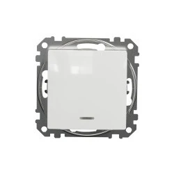 Łącznik krzyżowy z podświetleniem, biały, to osprzęt serii Sedna Design & Elements marki Schneider Electric. Łącznik krzyżowy ma lśniące wykończenie powierzchni w kolorze białym i posiada następujące wymiary: szerokość 73 mm, wysokość 73 mm, głębokość 37 mm, głębokość w ystawania 24 mm. Długość izolacji zdejmowanej z kabla to 13 mm. Łącznik charakteryzuje się stopniem ochrony IP20 i zakresem mocy wynoszącym 2300 W. Do produkcji łącznika wykorzystano tworzywo termoplastyczne o zwiększonej odporności na promieniowanie UV. Produkt jest mo ntowany podtynkowo i posiada zaciski śrubowe. Urządzenie może byc wykorzystywane jako tradycyjny włącznik światła lub służyć do załączania innych urządzeń o maksymalnym poborze prądu do 10 AX w instalacjach z 2 łącznikami schodowymi, w których zachodzi potrzeba sterowan ia tym samym źródłem swiatła z 3 i więcej różnych punktów. Uwaga: produkty Sedna Design & Elements nie są kompatybilne z serią Sedna!